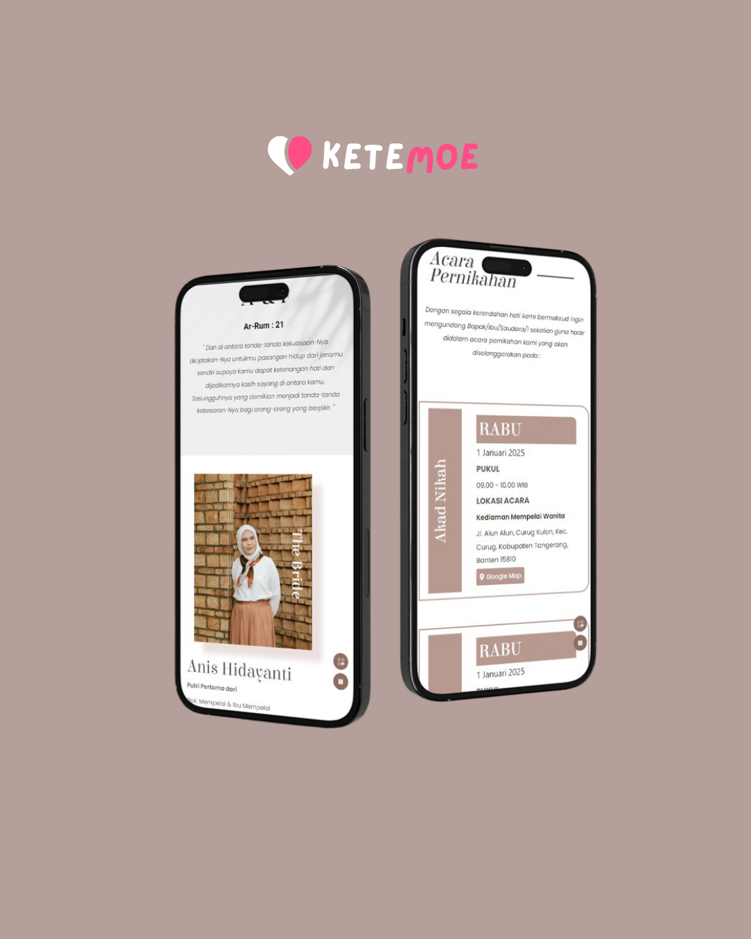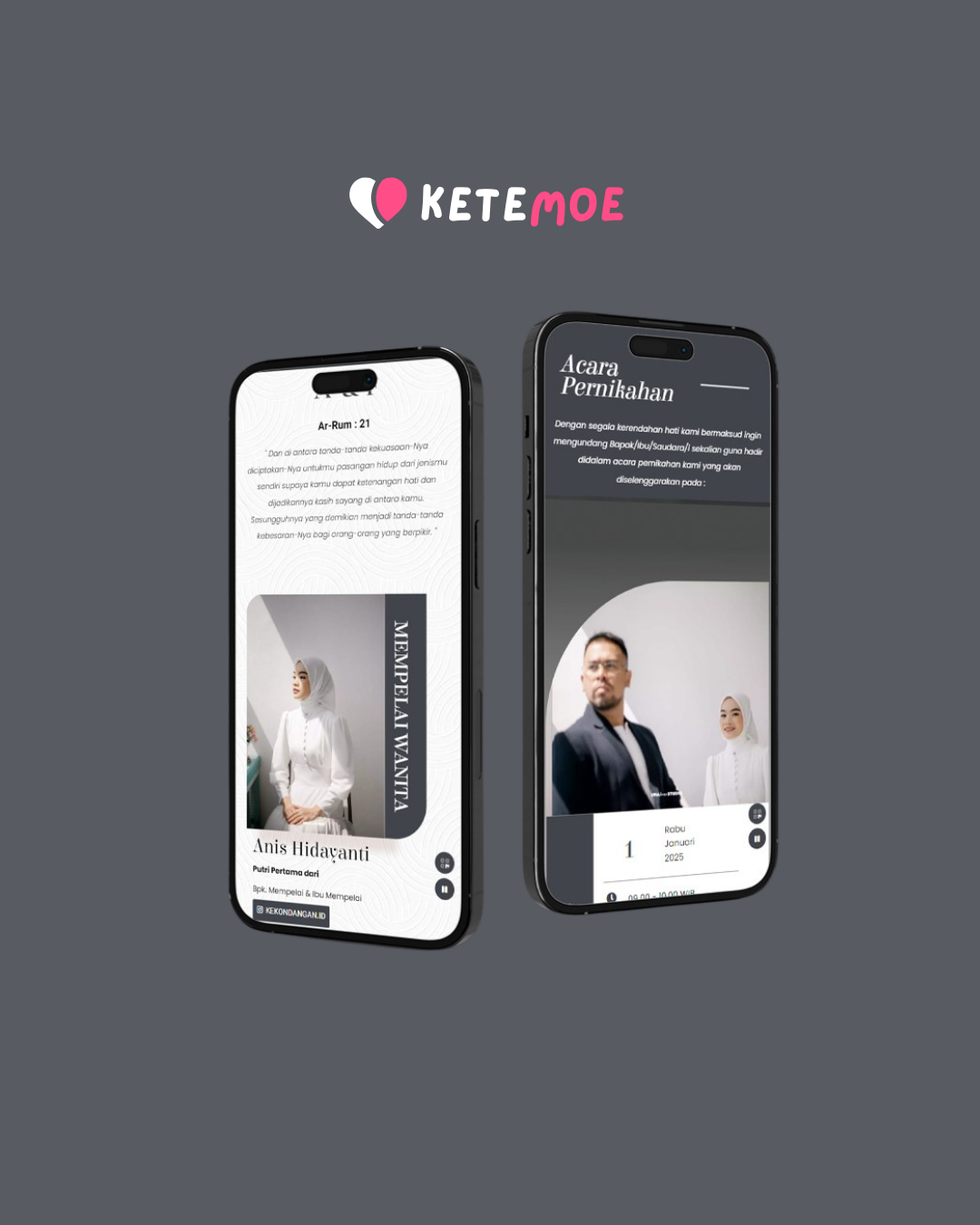Ketemoe combines elegance and simplicity in Digital Invitations & Wedding Songs. Experience hassle-free sharing with exclusive, minimalist designs—all in one simple touch.